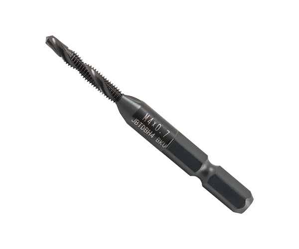 JBTDBH4は、1本で「下穴あけ」と「ねじ切り(タップ加工)」を同時にこなすタップドリル。