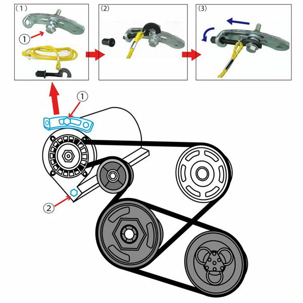 ・ロックベルト部に引っ掛けて六角ナットを締め込むだけで、ジェネレーターベルトの張りを安定的に再現