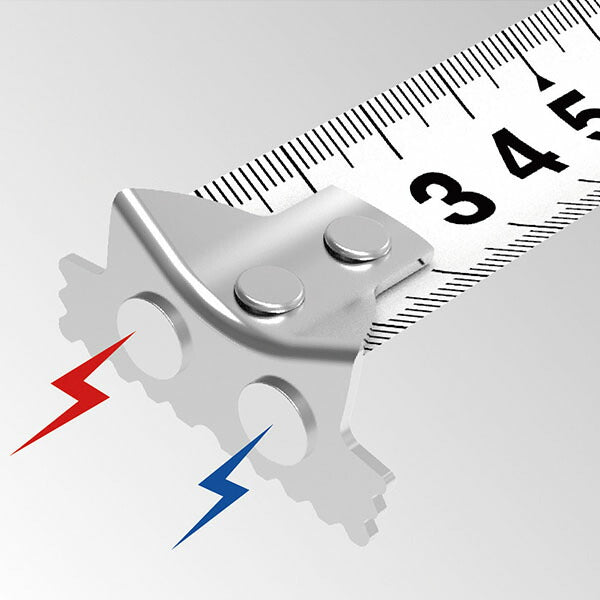 反射を抑えた読みやすいテープと、クロムメッキ加工された本体部分が特徴。