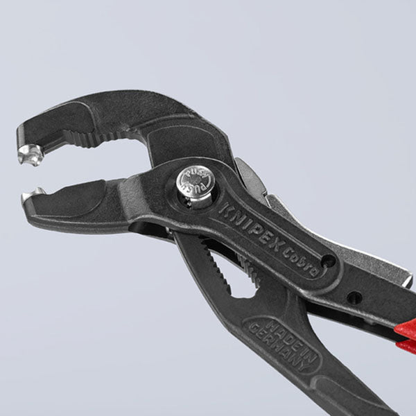 鋸刃状のアゴを使ってホースをやさしく取り出すことができます。