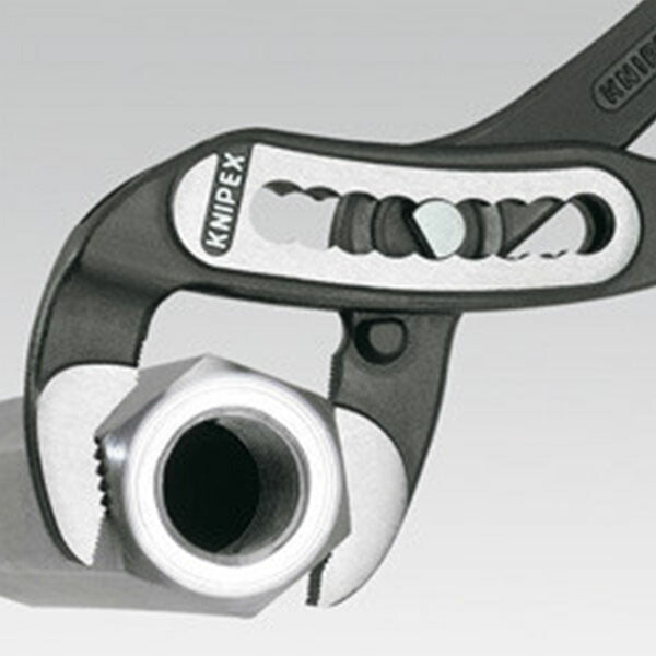 パイプやナットをセルフロックするので、ワークから滑り落ちることがなく、少ない力で確実につかみます。