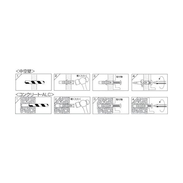 ■特長: 中空壁にもコンクリート・ALCにも使用できるマルチなプラグです。 ■用途: 中空壁、コンクリート、ALC。
