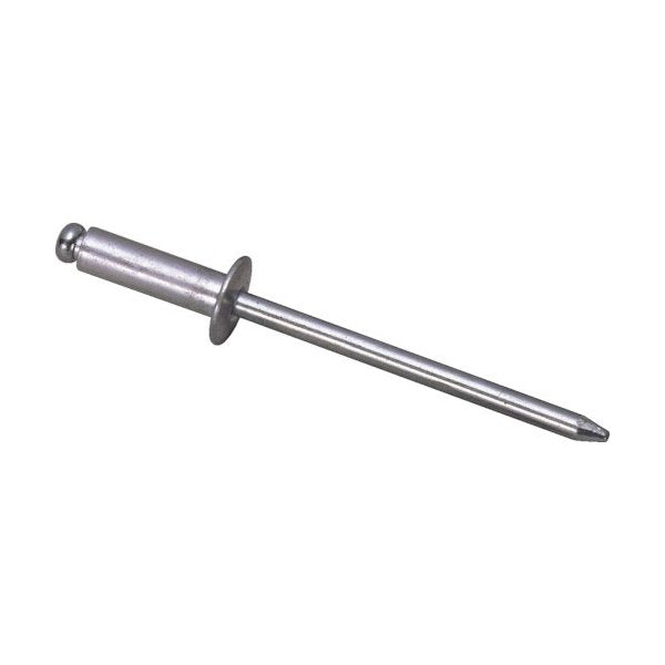 ■仕様: かしめ板厚(mm):9.5〜12.7 リベット長(mm):17.2 フランジ径(mm):8.0 リベット径(mm):4.0 下穴径(mm):4.1〜4.2 せん断荷重(N):1150 引張荷重(N):1640 箱入数(本):1000