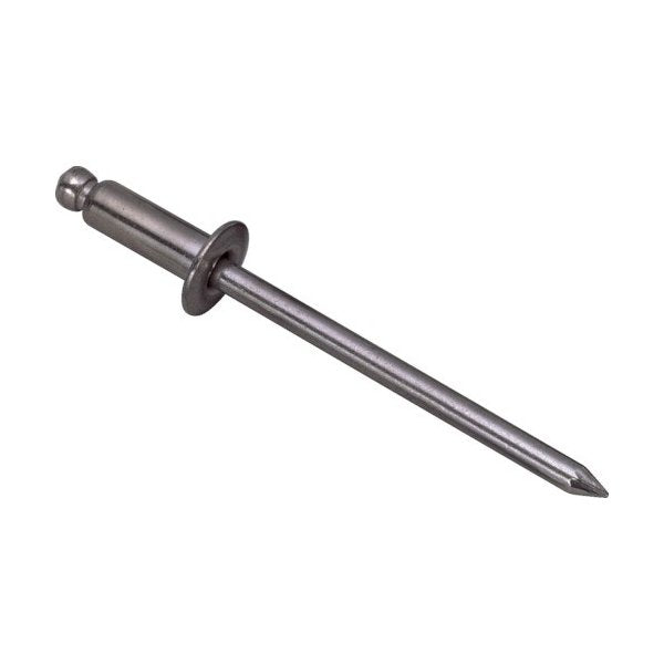 ■仕様: かしめ板厚(mm):3.2〜6.4 リベット長(mm):9.9 フランジ径(mm):6.4 リベット径(mm):3.2 下穴径(mm):3.3〜3.4 せん断荷重(N):1300 引張荷重(N):1700 箱入数(本):1000