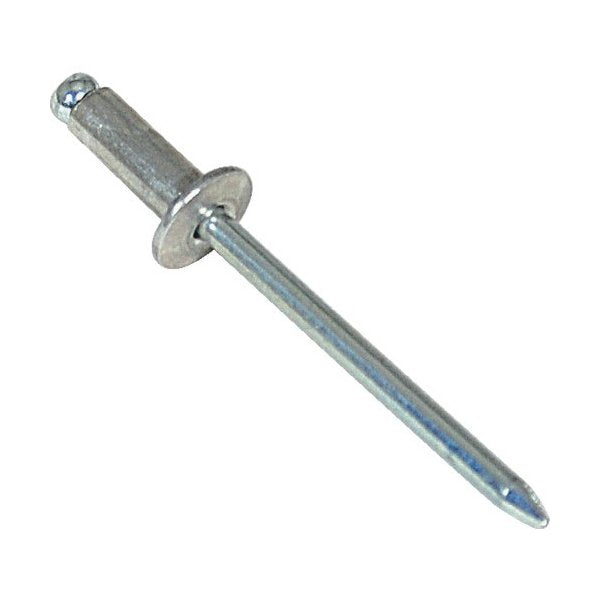 ■仕様: かしめ板厚(mm):4.8〜8.0 リベット長(mm):12.8 フランジ径(mm):9.6 リベット径(mm):4.8 下穴径(mm):4.9〜5.0 せん断荷重(N):2200 引張荷重(N):3300 箱入数(本):150