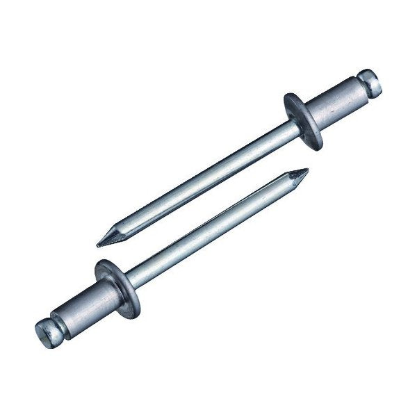 ■仕様: かしめ板厚(mm):3.2〜6.4 リベット長(mm):12.4 フランジ径(mm):12.8 リベット径(mm):6.4 下穴径(mm):6.5〜6.6 せん断荷重(N):3400 引張荷重(N):5300 箱入数(本):500