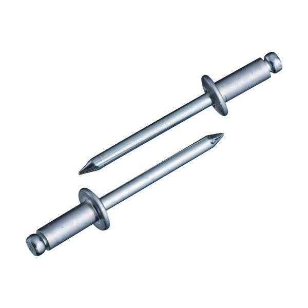 ■仕様: かしめ板厚(mm):6.4〜9.5 リベット長(mm):15.6 フランジ径(mm):12.8 リベット径(mm):6.4 下穴径(mm):6.5〜6.6 せん断荷重(N):3400 引張荷重(N):5300 箱入数(本):500