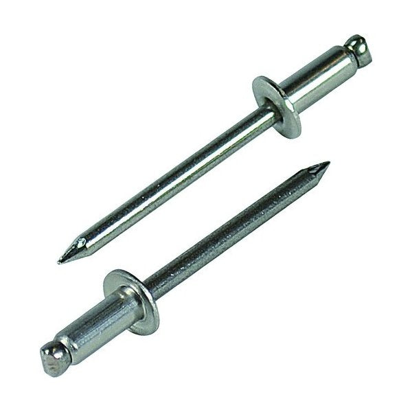 ■仕様: かしめ板厚(mm):3.2〜6.4 リベット長(mm):9.8 フランジ径(mm):7.9 リベット径(mm):4.0 下穴径(mm):4.1〜4.2 せん断荷重(N):3400 引張荷重(N):3950