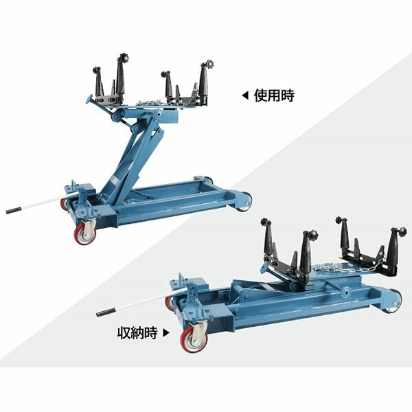 各種トランスミッションの脱着作業に最適で、ハンドルは回転式のため、作業者の位置に応じて柔軟に操作が可能です。