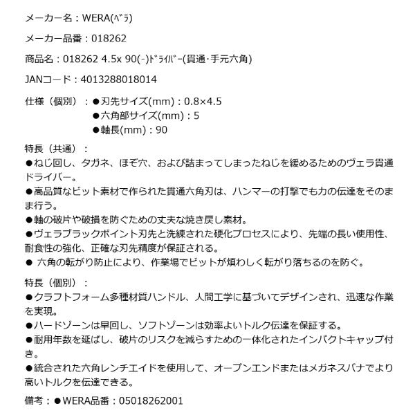 商品名:018262 4.5x 90(-)ドライバー(貫通・手元六角)