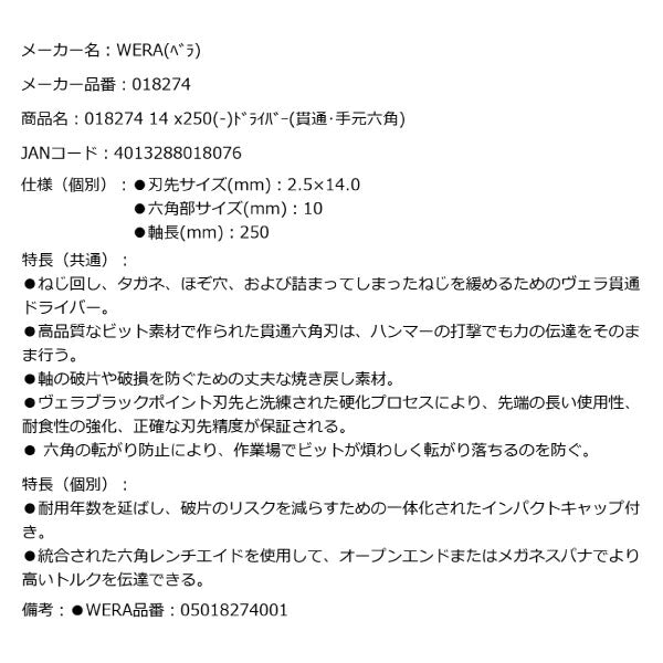 商品名:018274 14 x250(-)ドライバー(貫通・手元六角)
