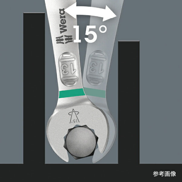 ねじ締め中に長手方向軸の周りでレンチを180度回転させると4つの配置が可能になり、ボルトまたはねじの頭は15度ごとに係合できます