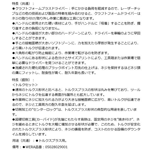 機能性・デザイン性抜群のWERAクラウンをあしらったクラフトフォームハンドルのトルクスプラス用ドライバー