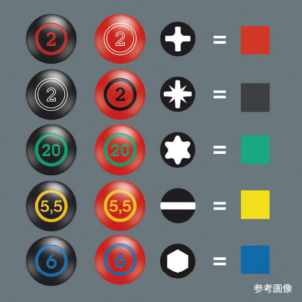 Take it easy色分けシステム:先端形状によって色分けされたドライバーで、必要なドライバーを見つけるのに便利です