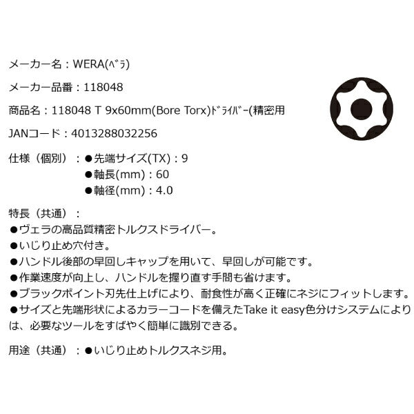 商品名:118048 T 9x60mm(Bore Torx)ドライバー(精密用)