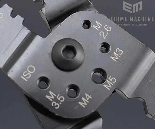 M2.6・3・3.5・4・5の銅および真鍮製のねじを切断することができる穴が空いています。