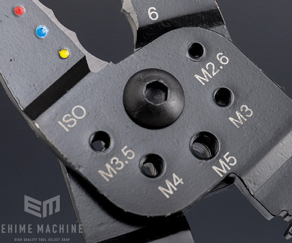 M2.6・3・3.5・4・5の銅および真鍮製のねじを切断することができる穴が空いています。