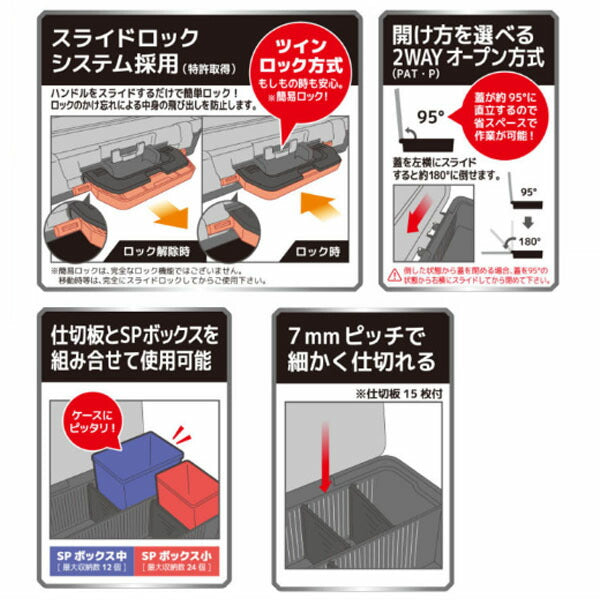 仕切板とSPボックスを組み合せて使用可能。ケースにピッタリ入ります。