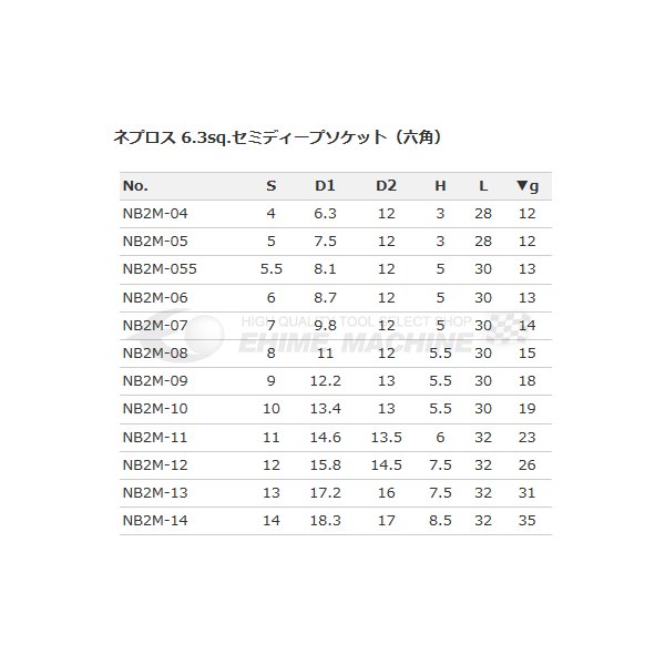 NEPROS NB2M-06 サイズ6mm 6.3sq.六角セミディープソ...