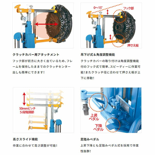 ⇒ クラッチカバーを床に下ろさず仮置きでき、移動も容易になります