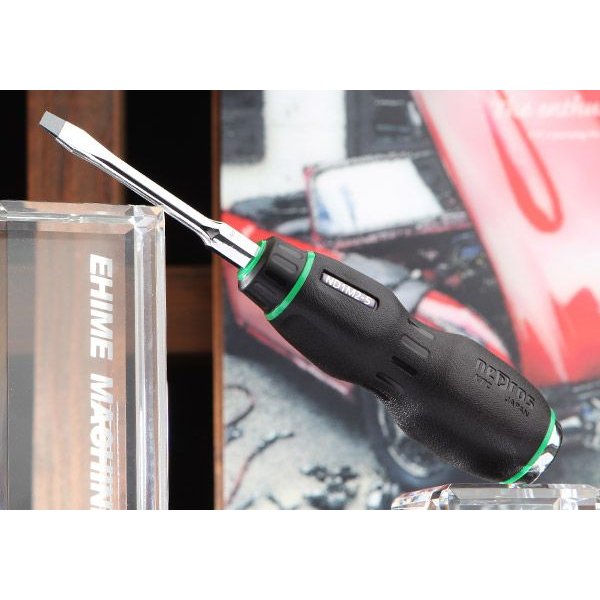 磨き上げられたメッキと、マイナスドライバーを見分けるための緑ライン。