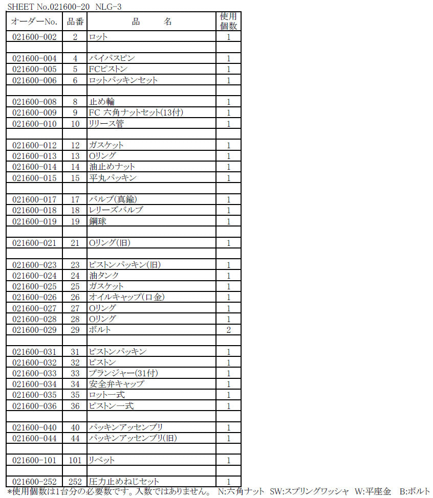 NLG-3用部品 【 ピストン一式 】 の商品ページです。
