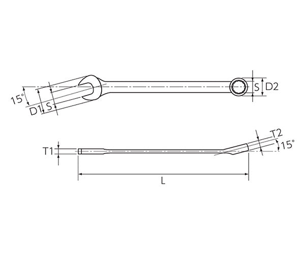 スパナ側ヘッド部は幅を極力小さく、力の加わる部分にボリュームを持たせ、従来のやり形を進化させたKTC独自の新やり形ヘッドです。