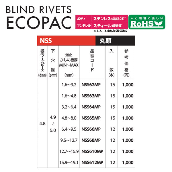 適正かしめ板厚、下穴径は当社指定寸法を守り安全率を十分に考慮して施工してください。