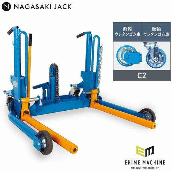 長崎ジャッキ NWD-500GR-C2 は、回転フォーク機構とウレタン車輪を採用した高機能ホイルドーリーです。大型車のタイヤ交換作業を安全かつスムーズに行えるよう設計されています。