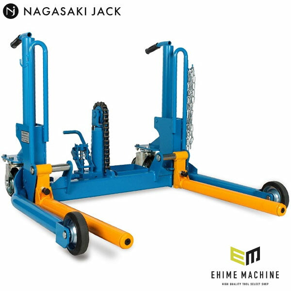 長崎ジャッキ NWD-500GRP は、回転フォーク機構と足踏みペダル昇降を両立したハイブリッド型ホイルドーリーです。2t車から大型車までのタイヤ交換作業を効率化し、作業者の負担を大幅に軽減します。