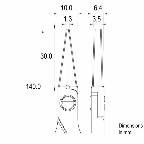 先端部分は完全な対称性を備えており、極めて精密な作業に最適なプライヤーです。