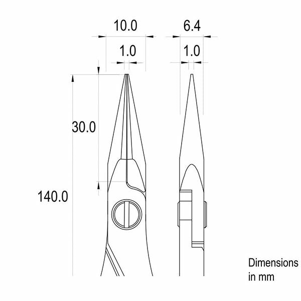 先端部分は完全な対称性を備えており、極めて精密な作業に最適なプライヤーです。
