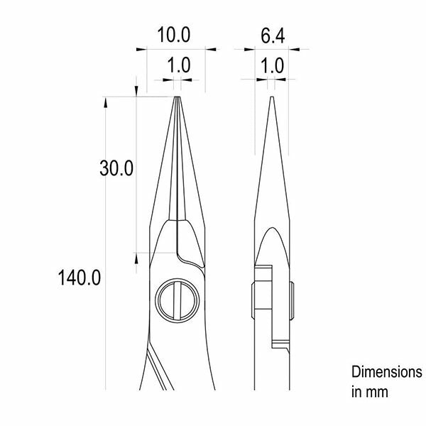 先端部分は完全な対称性を備えており、極めて精密な作業に最適なプライヤーです。
