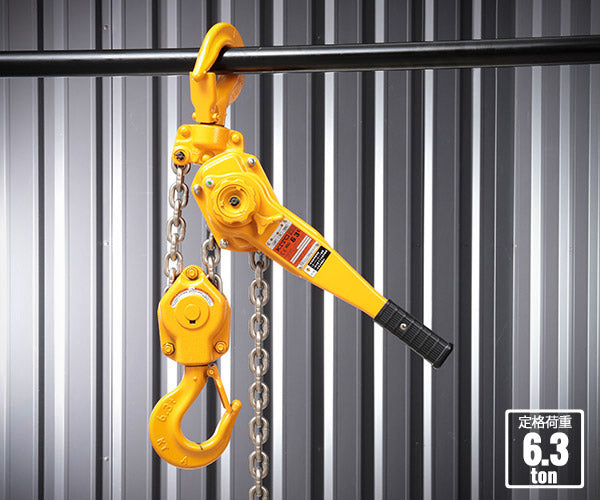 ※予告無く仕様変更、廃番になることがあります。ご注文後に欠品の場合はご連絡させていただきます。●定格荷重(t):6.3●標準揚程(m):1.5●フック間最小距離(mm):540●レバー長さ(mm):415