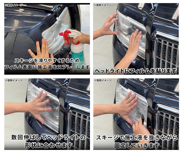 ECHELON(エシュロン)スムージーブレードは、カット済みヘッドライトプロテクションフィルムの施工をスムーズにする専用スキージです。