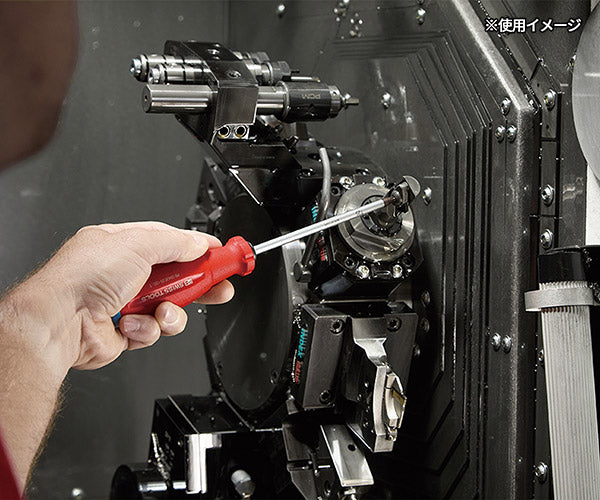 グリップエンドには先端形状とサイズが均等に表示されており、作業中でも必要な工具を一目で判別可能。さらに、その配置により調整ボルトをどの角度回したかが目視で把握できます。