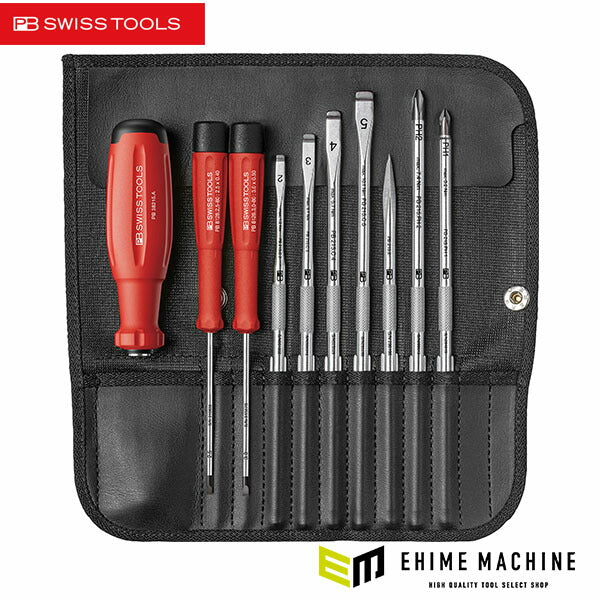 PB SWISS TOOLSのスイスグリップEVOハンドルに、汎用ブレードと精密ドライバーを組み合わせた9本組。
