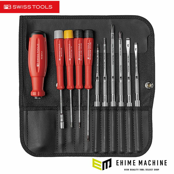 差替式SwissGrip EVOハンドルと精密ドライバーを厳選した10本組。マイナス/プラス/Torxを効率よくカバーし、人工皮革のロールアップケースでスマートに携行。