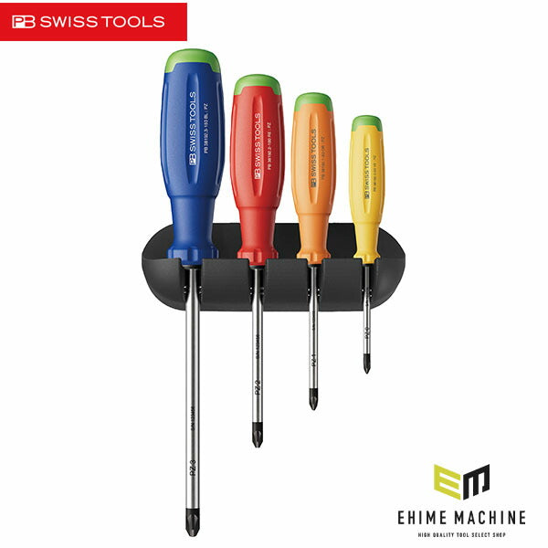 PBスイスツールズの新世代グリップ「スイスグリップEVO」を採用した、ポジドライバー4本セット(ホルダー付)。