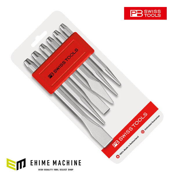 セット内容:センターポンチ(710-2)、テーパーピンポンチ(730-3・4)、フラットタガネ(805-12・18)、エボシタガネ(815-5)