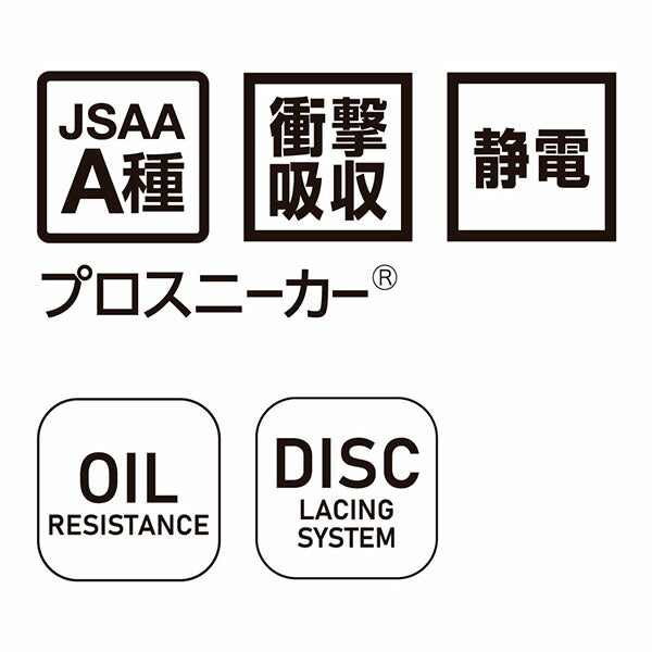 縫い目のないシームレス仕様で足当たりを抑えつつ、DISCレーシングシステムで着脱もフィット調整もスムーズ。帯電防止、耐油、衝撃吸収など、現場で欲しい要素をしっかり押さえたロータイプです。