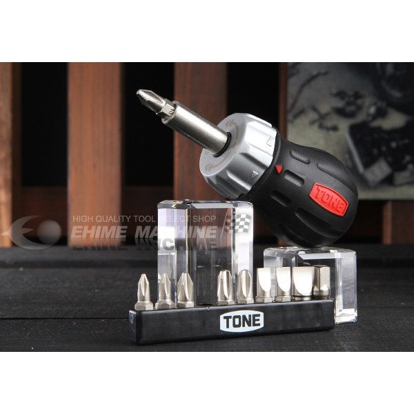 狭い場所で便利な全長の短いラチェット機能付きのスタビードライバーです。