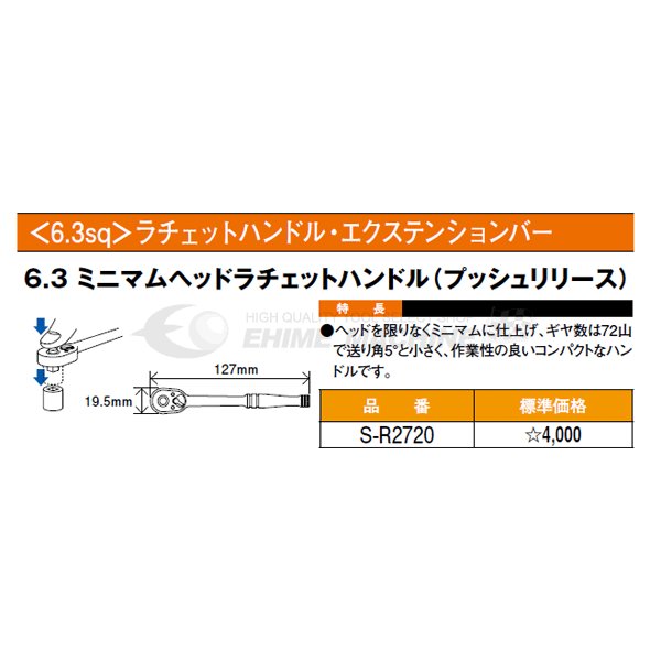 ヘッド部を限りなくミニマムに設計。プッシュリリースタイプ。72山。送り角5° 細かい作業で低トルクの作業に適します。