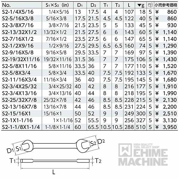 KTC スパナ【インチサイズ】 S2-3/4X13/16