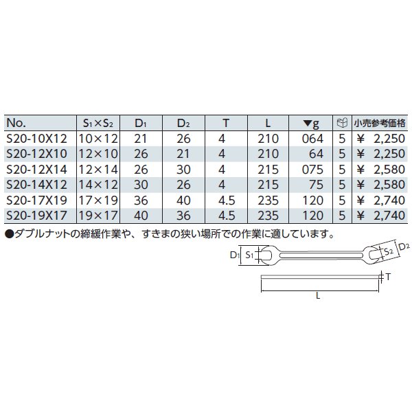 KTC 薄口スパナ S20-19X17