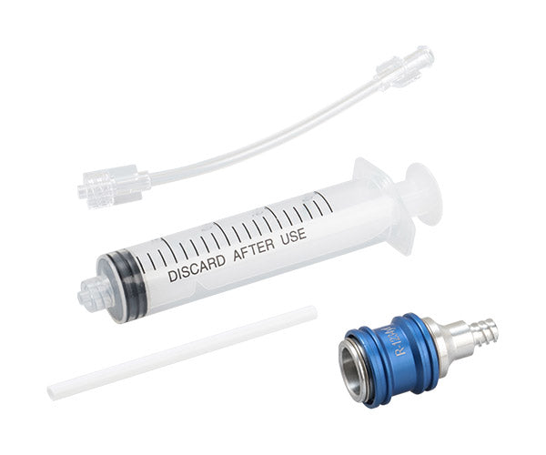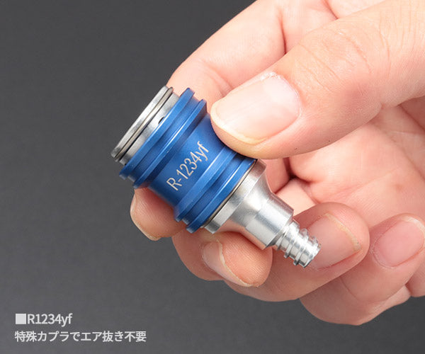 R1234yf用で、イージーインジェクター本体、エキステンションホース、吸引用ストロー、アルミ製カプラーが付属しています。