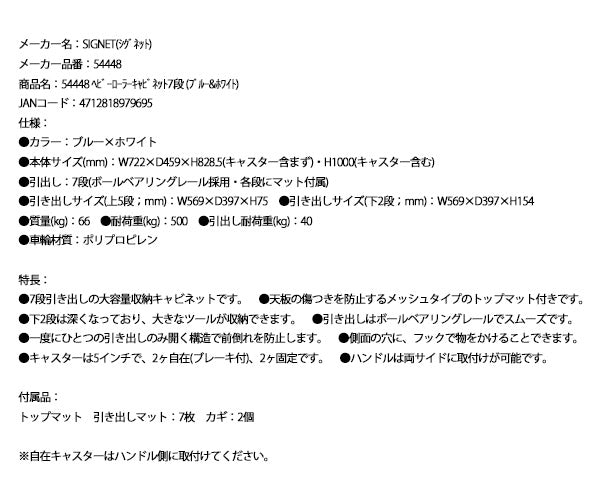 商品名:54448 ヘビーローラーキャビネット7段 (ブルー&ホワイト)