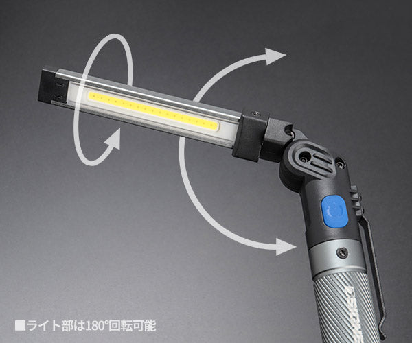 さらに、180°回転するライト部と、強力なマグネット、フック、クリップが内蔵されており、さまざまな場所に取り付けて使用できます。