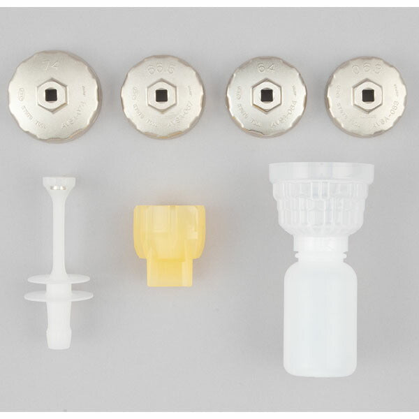 ■特長 主要なオイルフィルタに対応するオイルフィルタレンチ4点とオイル交換を快適・効率的にするアイテムのセットです。