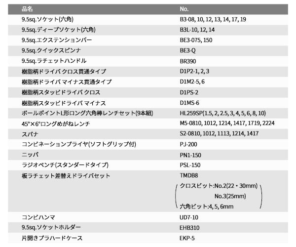 | メーカー | KTC(エヒメマシンオリジナルセット) |